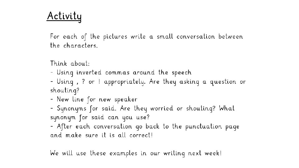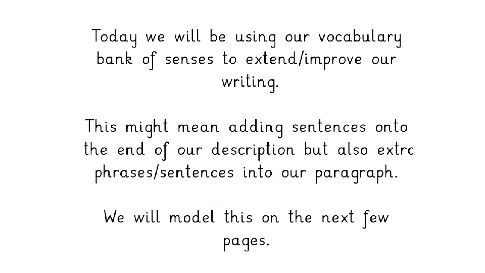 Click on the link below to see Miss Quinn showing you how to continue with your writing. Make sure you are in slideshow mode before you click the link. https: //www. youtube. com/watch? v=5 Kn. FGqmx. WFI
