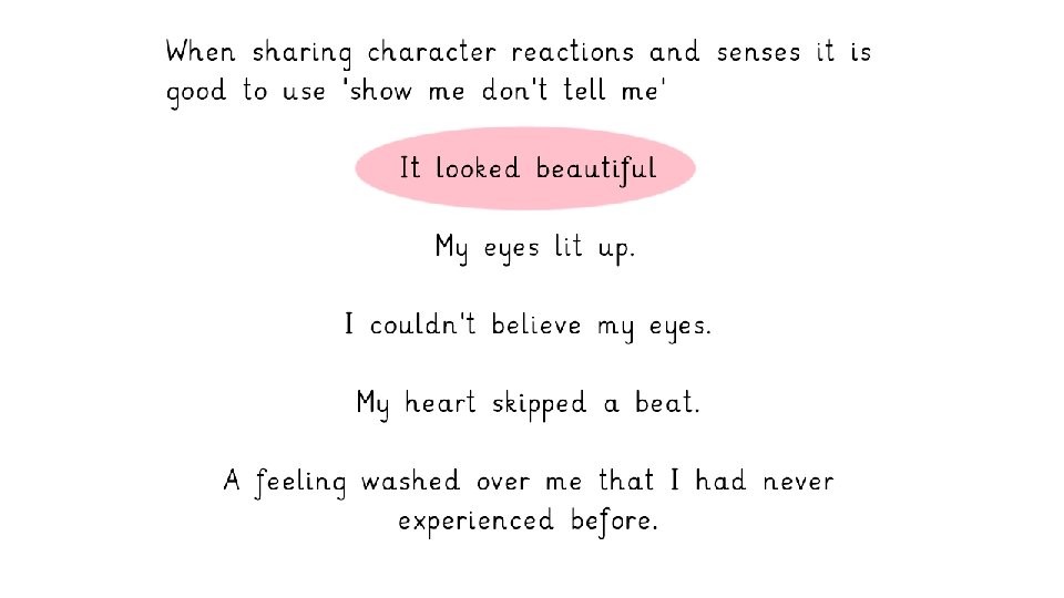 Activity: Continue with your description. Make sure you have checked it through then add more description using your vocabulary on senses and character reaction.