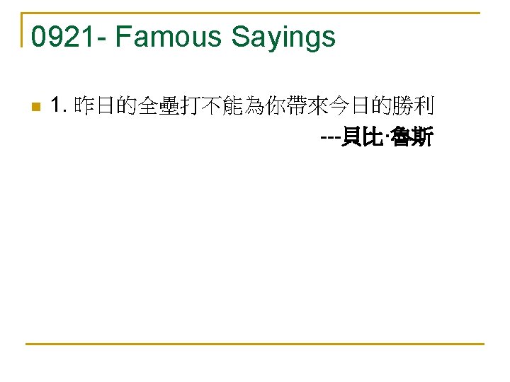 0921 - Famous Sayings 1. A home run yesterday doesn’t guarantee your win today. ---Babe Ruths n