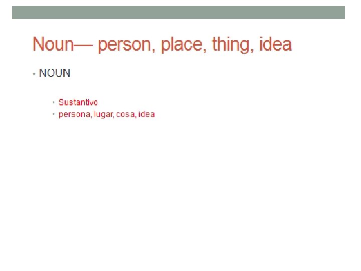 Bell Ringer • Label the nouns, adjectives, and verbs. • etiquetar cada parte de la frase con sustantivo, verbo, o adjetivo. • I have two brown dogs.