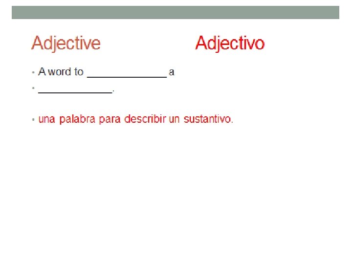 You write! • Write two sentences using a noun, adjective, and verb. • When you are finished, label each part of speech. • escribir dos oraciones usando un sustantivo, adjetivo, verbo y. • cuando haya terminado, etiquetar cada parte de la frase con sustantivo, verbo, o adjetivo.
