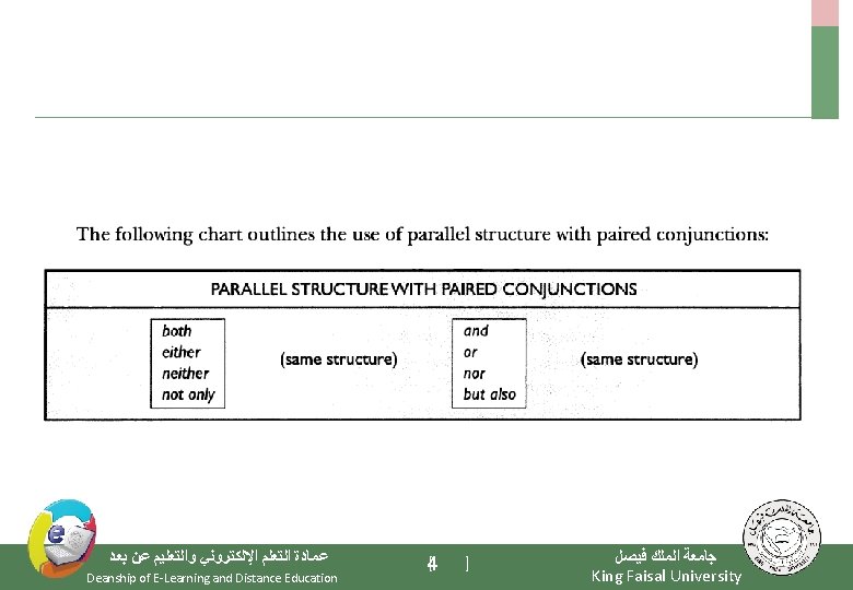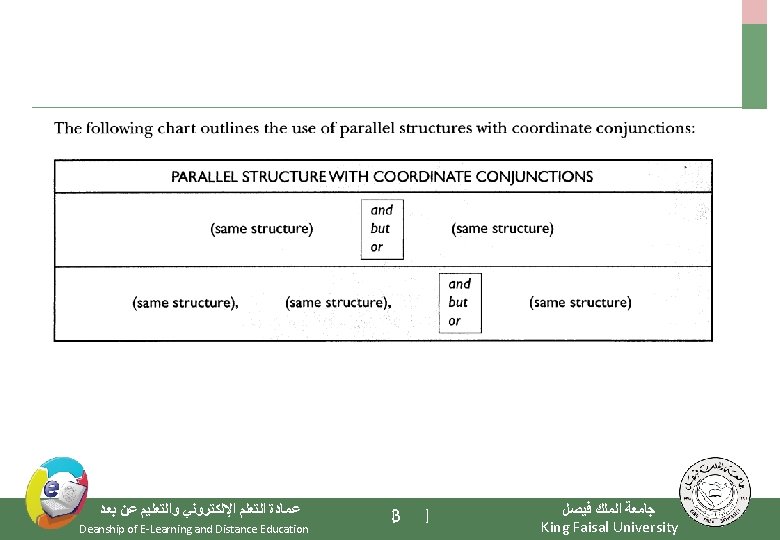 12 th Lecture Conjunctions (review) Comparison (Parellelism) Subordinating Conjunctions for Adverb, Adjective, Noun Clauses Transition words ﻋﻤﺎﺩﺓ ﺍﻟﺘﻌﻠﻢ ﺍﻹﻟﻜﺘﺮﻭﻧﻲ ﻭﺍﻟﺘﻌﻠﻴﻢ ﻋﻦ ﺑﻌﺪ Deanship of E-Learning and Distance Education [ ] 2 ﺟﺎﻣﻌﺔ ﺍﻟﻤﻠﻚ ﻓﻴﺼﻞ King Faisal University