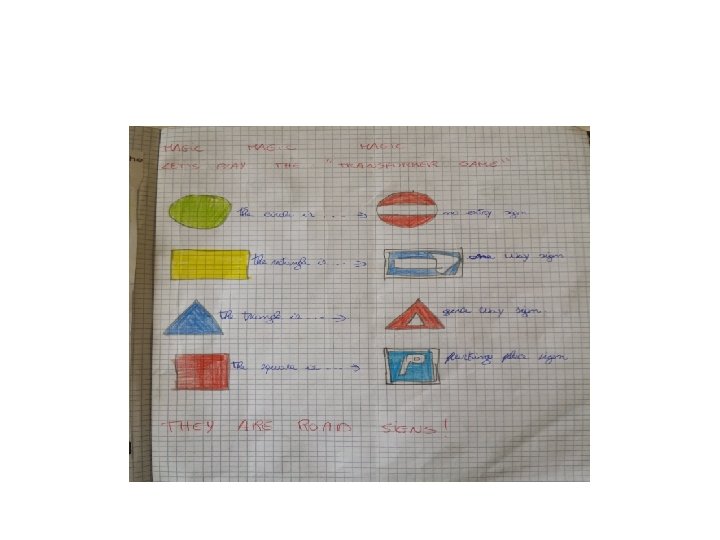 Terminata questa fase, col gioco del “trasformer” trasformiamo le figure geometriche in segnali stradali