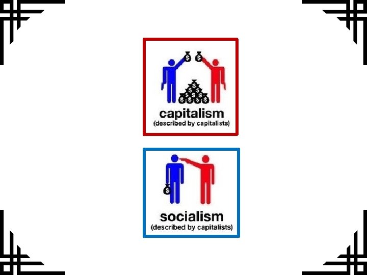 Socialism vs Capitalism Equal distribution of wealth Individual profit Diminished class system Looking after one another Everyone pays the same tax Social hierarchy and class system Free education and health service Staggered tax brackets ‘Laissez-faire’ attitude (let it be) Production for profit