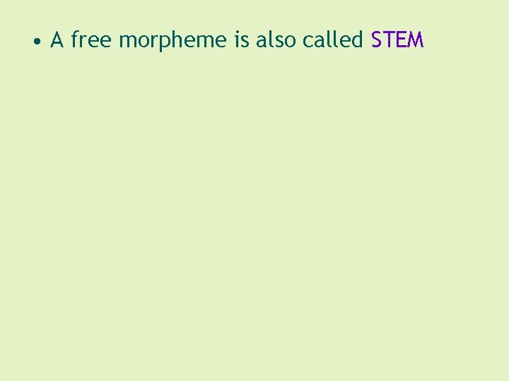 Free morphemes • lexical morphemes: – red, house, colour, kitchen, etc. • functional morphemes: – to, near, because, since, as, for, etc.