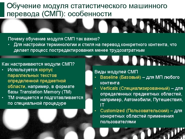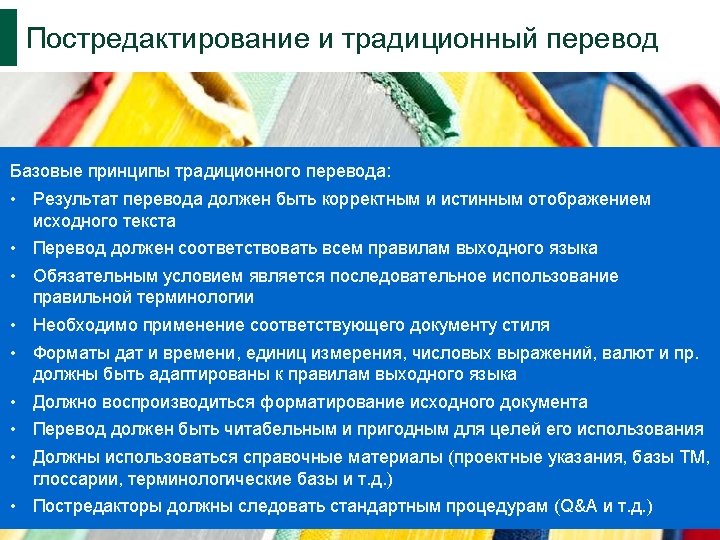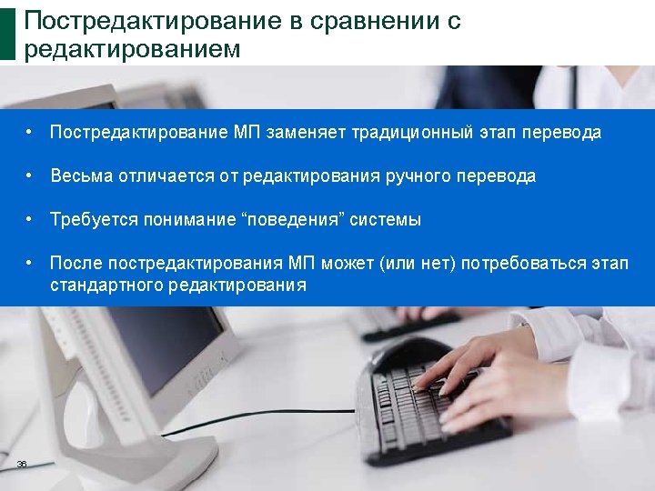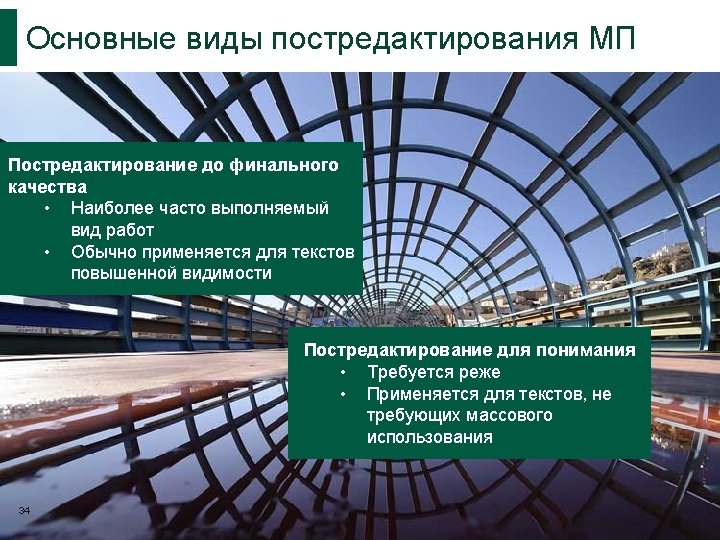 Различные определения постредактирования МП (PEMT) The “term used for the correction of machine translation output by human linguists/editors” (Veale and Way 1997) “checking, proof-reading and revising translations carried out by any kind of translating automaton” (Gouadec 2007) “In basic terms, the task of the post-editor is to edit, modify and/or correct pre-translated text that has been processed by a machine translation system from a source language (a) in to target language(s). “ (Allen 2003)