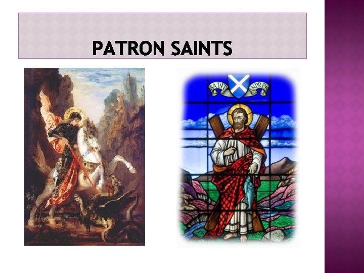 The Patron Saint of Wales is Saint David. March 1 st is St. David’s Day. In medieval times it was believed that St David was the nephew of King Arthur. According to legend David performed several miracles during his life including restoring Paulinus' sight. It is also said that during a battle against the Saxons, David advised his soldiers to wear leeks in their hats so that they could easily be distinguished from their enemies, which is why the leek is one of the national emblems of Wales.