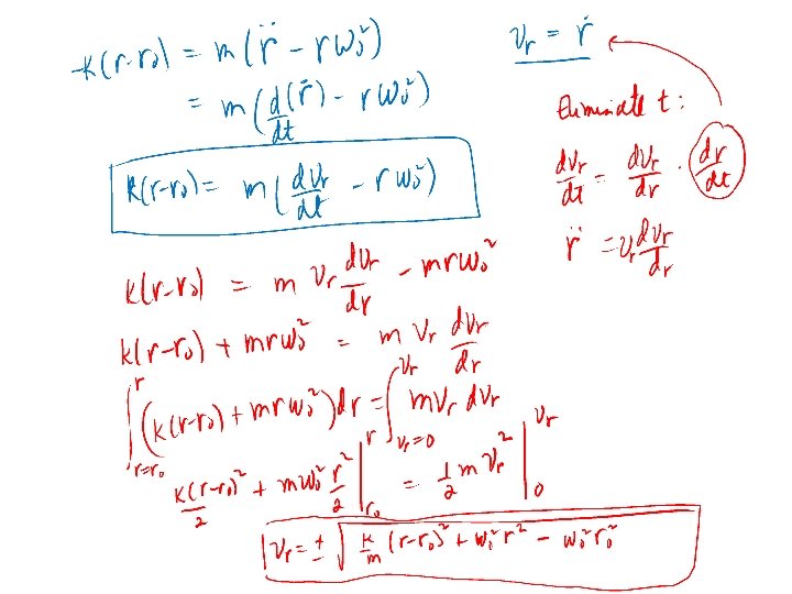 Example 2. The smooth bar rotates in the horizontal plane with a constant angular velocity o. The unstretched length of the spring is ro. The collar A has mass m and is released at r=ro with no radial velocity. Determine (a) vr(r), and (b) the horizontal (transverse) force exerted by the bar as a function of r.