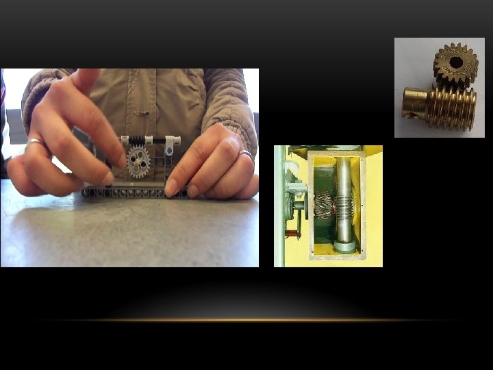 Parafuso sem Engrenagens de parafuso sem fim. Engrenagens sem-fim são usadas quando grandes reduções de transmissão necessárias. Esse tipo de engrenagem costuma ter reduções de 20: 1, chegando até a números maiores do que 300: 1. Muitas engrenagens sem-fim têm uma propriedade interessante que nenhuma outra engrenagem tem: o eixo gira a engrenagem facilmente, mas a engrenagem não consegue girar o eixo. Isso se deve ao fato de que o ângulo do eixo é tão pequeno que quando a engrenagem tenta girá-lo, o atrito entre a engrenagem e o eixo não deixa que ele saia do lugar. Essa característica é útil para máquinas como transportadores, nos quais a função de travamento pode agir como um freio para a esteira quando o motor não estiver funcionando. Cálculo