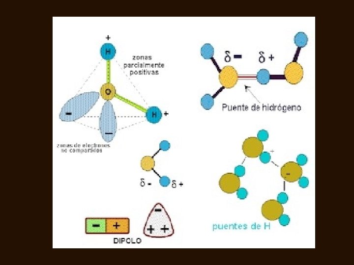 • Cuando la diferencia de electronegatividades es baja , se forma una pequeña carga negativa en el elemento mas electronegativo y una contracarga positiva en el otro y por tanto se genera una polaridad parcial y un enlace secundario.