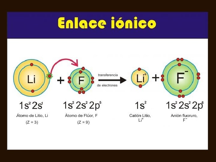 • Las fuerzas de atracción provocan que los iones se aproximen, las de repulsión evitan que se superpongan. • La fuerza del enlace se debe a las fuerzas de atracción que se producen entre una partícula de carga positiva y una negativa.