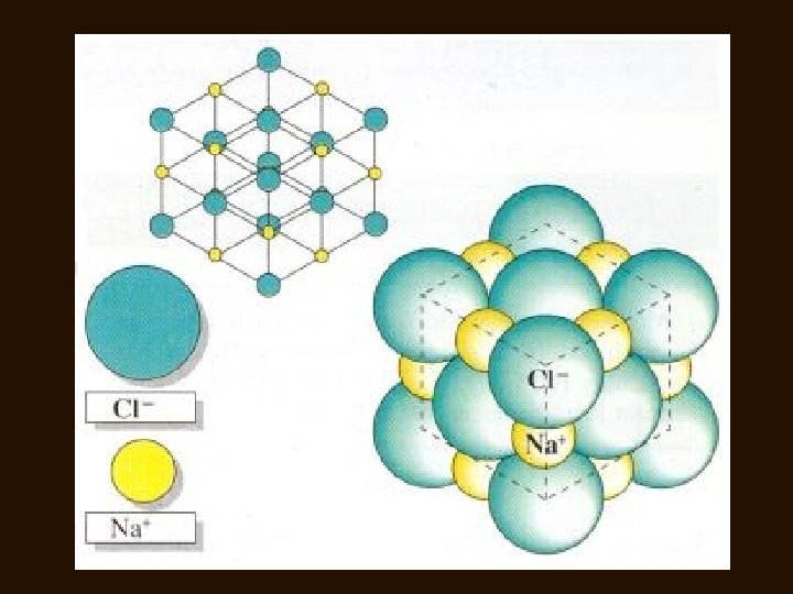 • Cuando el enlace iónico da lugar a un sólido en estado cristalino, como Na. Cl, los iones de Na y de Cl se sitúan de forma que el ión de una especie está rodeado siempre por un número determinado de iones de la otra especie.