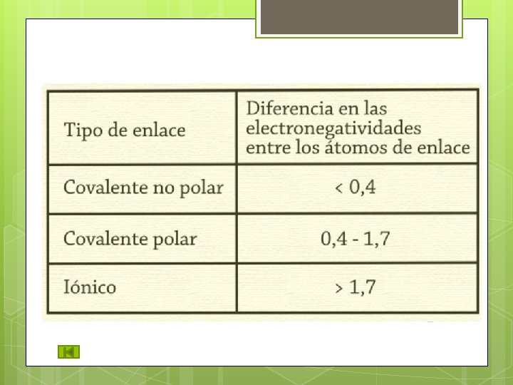 ELECTRONEGATIVIDAD La electronegatidad (EN) de un elemento es una medida de la tendencia relativa de un átomo a atraer electrones hacia sí mismo cuando está combinado químicamente con otro átomo.