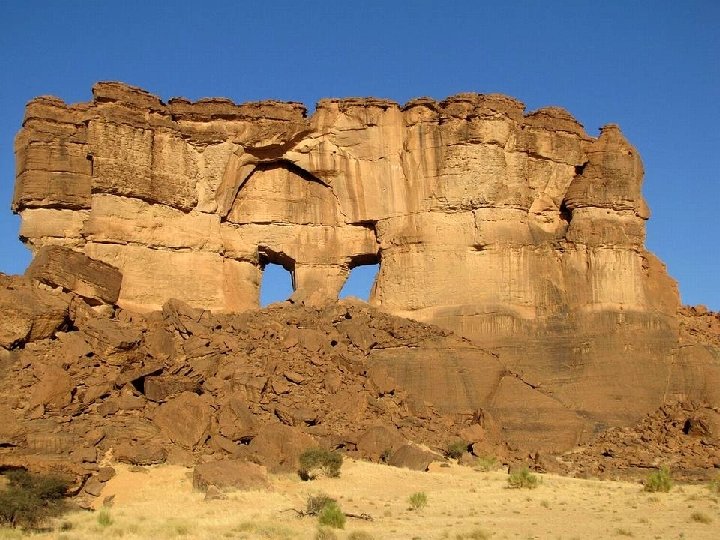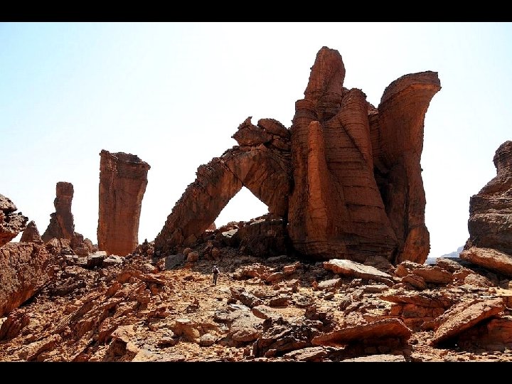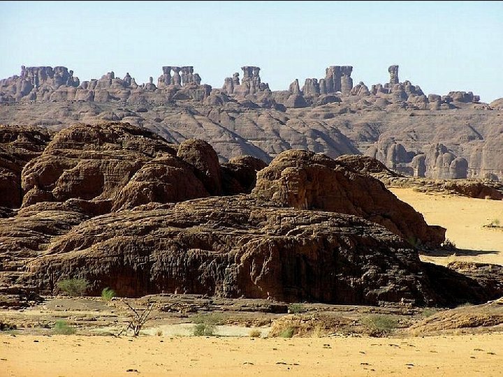 Das Ennedi-Plateau liegt im Nordosten des Tschad in der Borkou-Ennedi-Tibesti Region und bildet eine der Grenzen des Tschadbeckens. Sein höchster Berg ist der Basso, 1450 Meter. Es ist ein Sandsteinkomplex, mitten in der Sahara, der von allen Seiten dem erosiven Angriff des Sandes ausgesetzt ist, der auch in die tiefen Täler des Ennedi Eingang findet. Besondere Beachtung fand diese Region innerhalb der geowissenschaftlichen Forschung, weil sich aus dem Sandstein ausgeprägte Karsterscheinungen, wie beispielsweise Turmstrukturen, herausgebildet haben. Verschiedene Felszeichnungen wurden hier gefunden. Das Plateau hat eine reiche Fauna zu bieten, besonders zu erwähnen sind hier die Krokodile im Guelta d’Archei, die durch die lange Abgeschiedenheit ihrer Population zwergwüchsig geworden sind, und außerdem vom Aussterben bedroht. Auch die letzten Löwen der Sahara überlebten hier, bis um 1940 zum letzten Mal einer gesichtet wurde. Vermutlich war in der Vorzeit auch der Ennedi-Tiger (ein Säbelzahntiger) hier heimisch. Im Westteil des Ennedi liegt das 2. 110 km² große Wildtierreservat Fada Archei. Das Ennedi-Massiv war möglicherweise der Ursprung des Uramazonas, als es vor 130 Millionen Jahren noch zum Superkontinent Gondwana gehörte.