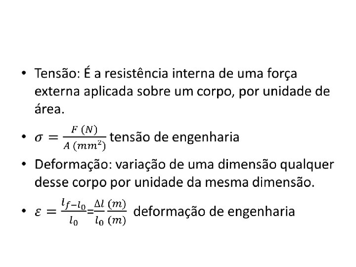 • O processo de deformação no qual a tensão e a deformação são proporcionais e é chamada de deformação elástica
