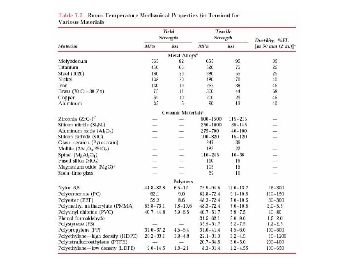 • σ= E. ɛ (GPa) • Módulo de elasticidade para varios materiais