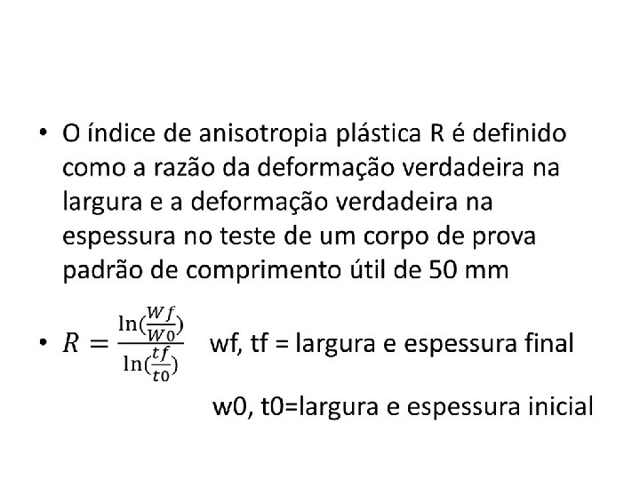 Anisotropia • A anisotropia surge devido a orientação preferencial dos grãos no metal, após uma deformação mecânica o que ocasiona uma anisotropia cristalográfica , ou devido ao alinhamento de inclusões, vazios, segregações, ou ainda, devido a um alinhamento de uma segunda fase precipitada e também devido à deformação mecânica.