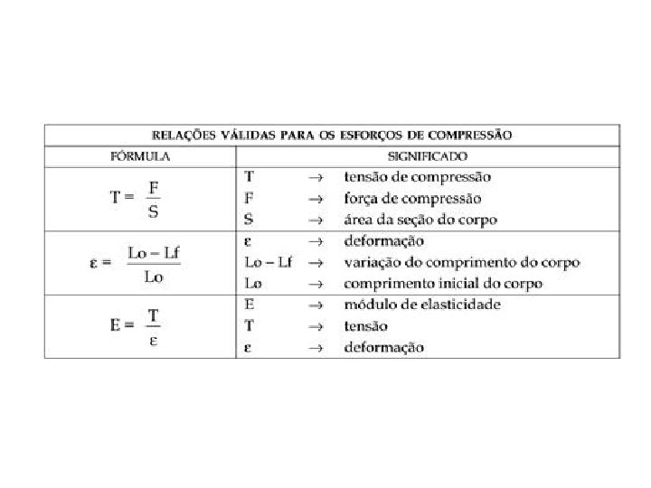 Ensaio de compressão • De modo geral, podemos dizer que a compressão é um esforço axial, que tende a provocar um encurtamento do corpo submetido a este esforço. • Nos ensaios de compressão, os corpos de prova são submetidos a uma força axial para dentro, distribuída de modo uniforme em toda a seção transversal do corpo de prova.