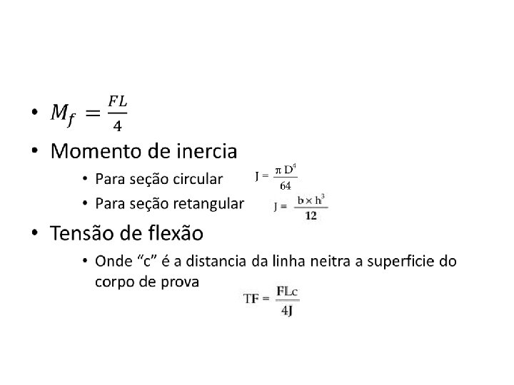 • Propriedades avaliadas • a tensão de flexão, que esta relacionado com o momento fletor
