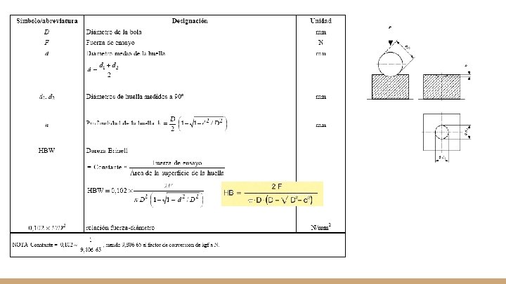 PRINCIPIO Se presiona un indentador (bola de metal duro, de diámetro D) contra la superficie de una probeta de ensayo y se mide el diámetro de la huella, d, dejada en la superficie al retirar la fuerza, F.