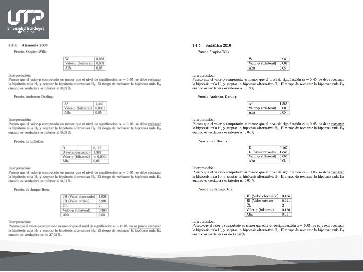 Pruebas de normalidad H 0: La cantidad de goles anotados en un mundial de fútbol tienen una distribución normal. H 1: La cantidad de goles anotados en un mundial de fútbol no tienen una distribución normal.