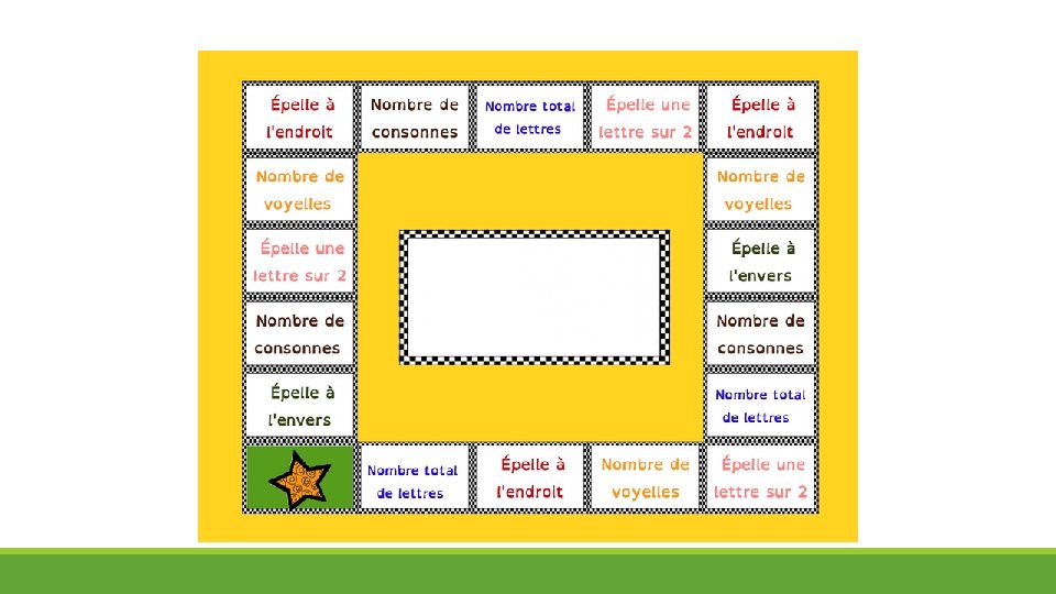 - En cas d'erreur, pas de soucis, on reprend la phase de mémorisation. - Si on réussit : on avance sur le plateau, ou on gagne la carte, ou un jeton ou. . . Il est important que les tâches proposées soient multiples et tirées au hasard pour éviter que l’enfant anticipe au moment de la mémorisation du mot et continue à utiliser la subvocalisation (se répéter par exemple les lettres dans le sens inverse ou le nombre de voyelles etc…)
