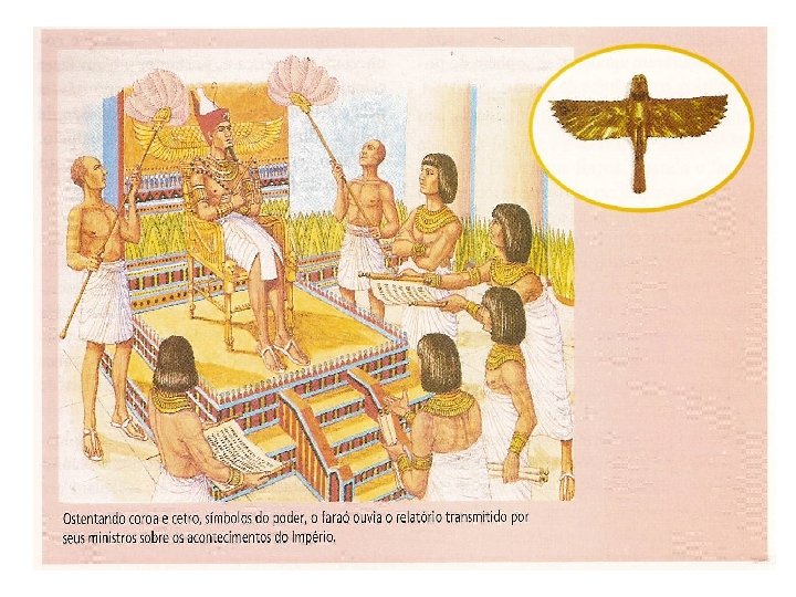 VIZIR: A maior autoridade depois do faraó. Cabia a ele tomar decisões jurídicas, administrativas e financeiras em nome do faraó. NOBRES: Descendentes das famílias mais importantes dos antigos nomos cuidavam da administração das províncias ou ocupavam os postos mais altos do exército. SACERDOTES: detinham muito poder, administravam todos os bens que os fiéis e o próprio Estado ofereciam aos deuses e tinham muita influência junto ao faraó. Enriqueciam porque ficavam com parte das oferendas feitas pela população aos deuses, além de serem dispensados do pagamento de impostos. ESCRIBAS: os que dominavam a difícil escrita egípcia, encarregavam-se da cobrança dos impostos, da organização das leis e dos decretos e da fiscalização da atividade econômica em geral. SOLDADOS: nunca atingiam os postos de comando, pois estes eram reservados à nobreza. Eles viviam dos produtos recebidos como pagamento e dos saques que podiam realizar durante as guerras de conquista. ARTESÃOS: exerciam as mais diversas profissões. Trabalhavam como pedreiros, carpinteiros, desenhistas, escultores, pintores, tecelões, ourives, etc. Muitas de suas atividades eram realizadas nas grandes obras públicas (templos, túmulos, palácios, etc. ). CAMPONESES: chamados no Egito de felás, constituíam a imensa maioria da população. Trabalhavam nas propriedades do faraó e dos sacerdotes e tinham o direito de conservar para si apenas uma pequena parte dos produtos colhidos. Eram também obrigados a trabalhar na construção de obras públicas grandiosas, como abertura de estradas, limpeza de canais, transportes de pedras necessárias às grandes obras, como túmulos, templos e palácios. ESCRAVOS: geralmente estrangeiros e prisioneiros de guerra, também compunham a base da sociedade. Trabalhavam, principalmente, nas minas e pedreiras do Estado, nas terras reais e nos templos. Muitas vezes faziam parte do exército em época de guerra e eram utilizados como escravos domésticos.