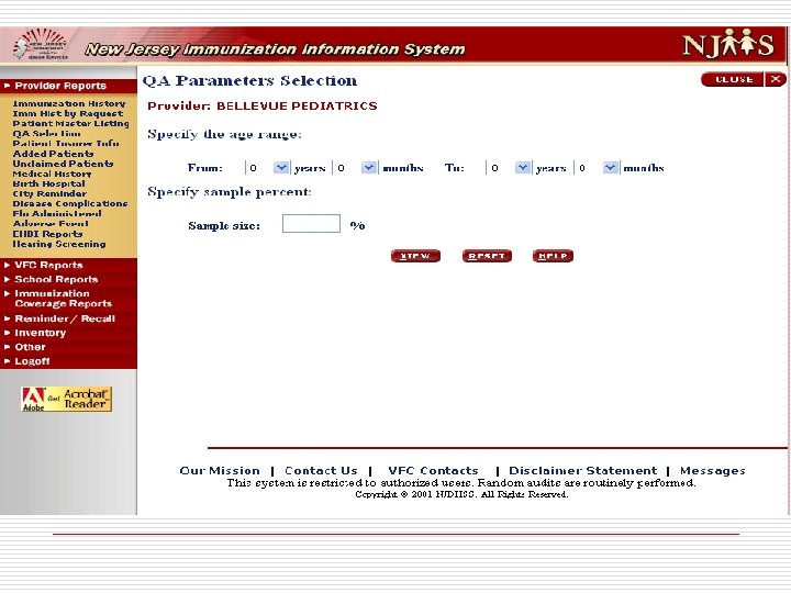 Batchload cont. o o o A satisfactory score is reported to OITS data load staff, who will then schedule the data upload. An unsatisfactory score is reported back to the site submitting the data file to investigate systematically erroneous coding procedures or incomplete documentation that could impact accuracy and/or completeness. A site with an unsatisfactory score must take corrective action and schedule a follow up chart audit. Immunization data is not loaded in NJIIS until the data pass the audit review.