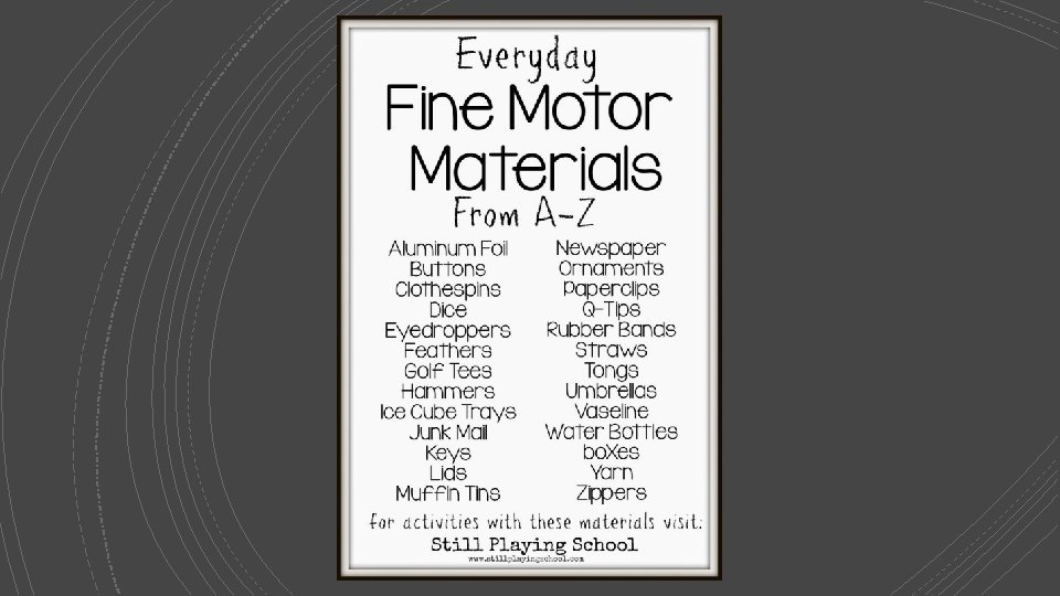 Cognitive § Free websites to practice academic skills like colors, numbers, letters. § § Abcya. com Starfall. com Abcmouse. com Vroom App § Non-tech ideas: § Scavenger Hunt – Find things in the house that start with the letter “B”. § “Memory” games and matching games.
