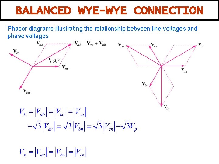 BALANCED WYE-WYE CONNECTION Phasor diagrams illustrating the relationship between line voltages and phase voltages
