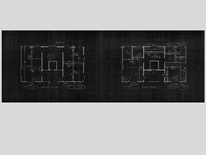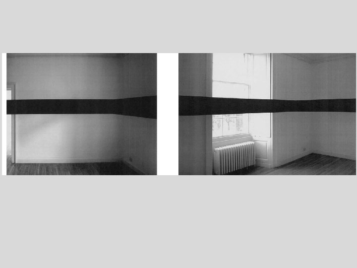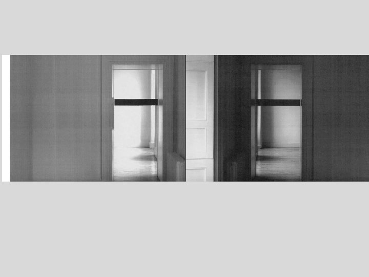 -Questions: Can a publication - through specifically treated documentation and a deliberately unconventional layout structure - in any way 'replicate' the viewer's real experience of sculptural work in the installation space? Can the publication act as a work in itself? How to physically implicate the viewer both in the work and as a performer in the actual installation space itself? Enter Love and Enter Death was our solo exhibition made for the seven rooms of Inverleith House, the gallery in the Georgian mansion in Edinburgh’s Royal Botanic Garden. In a pared-back and confrontational installation throughout the building, handmade sculptural constructions divide the space and the bodies of those populating it. The fabricated structures marked out the space (and its imagined potential functions). These divisions, determined to some extent by the fabric of the architecture, suggest feelings of somehow being categorised; split up into oppositional camps or simply surrounded. Through minimal means, the viewer's vision is obstructed and their movement frustrated: They are implicated within the work and forced to experience it. Once inside, the proximity and position of the framework compound the impossibility of being able to see the entire structure which is only comprehensible in the mind’s eye or imagination. These ideas were transposed into print on paper in a large-scale publication which attempted to be an extension of the work as well as its particular document. We used black & white photocopies of our documentation to give a sense of the work's simple, direct presence and deliberately utilised zooming in, white borders and breaks from this reproduction process as part of the structure of the book's layout. This was then scanned, designed and printed in a limited edition, working with renowned book designer Robert Dalrymple, Edinburgh. Image one & a description of what we are looking at in the context of the project.