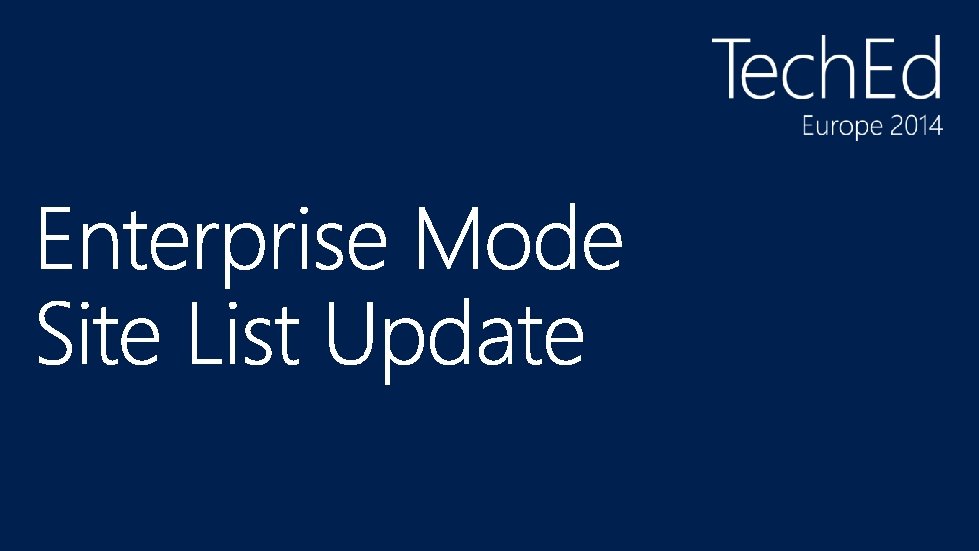 XML Site List & Manager Tool Specify Enterprise Mode by domain or web path True/false “exclude” syntax enables finegrained control <rules version="3"> <emie> <domain exclude="false">crm <path exclude="true">/New. Module</path> </domain> <domain exclude="true">erp <path exclude="false">/Old. Module</path> </domain> <domain>timecard</domain> </emie> </rules>