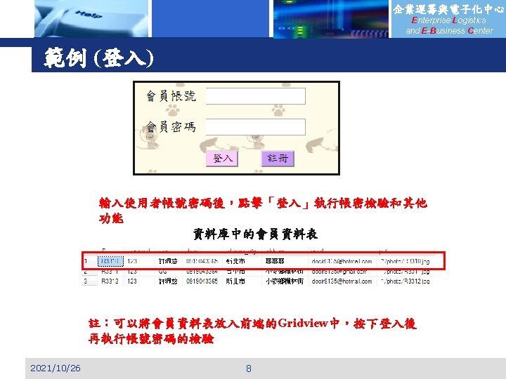 企業運籌與電子化中心 Enterprise Logistics and E-Business Center 範例(查詢訂單) 2021/10/26 16