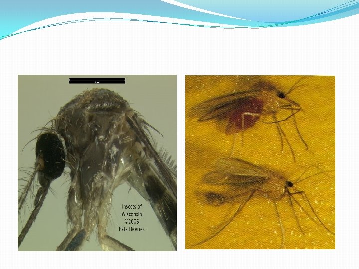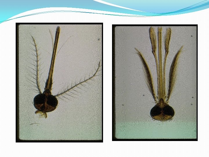 �Have a conducted eyes: can see in all directions. �Also have a spotted wings with dark and pale spots. �They act as a vectors in: � 1 - Malaria � 2 - Filaria � 3 - Arboviruses