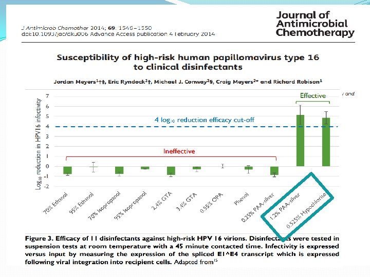 Výsledok: HPV 16 je vysoko rezistentný vírus, viac ako iné neobalené vírusy v minulosti testované na DL. Vírus je rezistentný na glutaraldehyd a ortho-phthaldehyd a citlivý na chlórové preparáty a „hmlu“ vysokokoncentrovaného peroxidu vodíka so striebrom. Záver: Sú prvýkrát prezentované dáta o rezistencii natívneho HPV 16 na DL, vrátane tých, ktoré sa používajú na VSD (medicínske a dentálne nástroje). Neočakávane vysoká rezistencia HPV 16 podporuje iné dáta predpokladajúce kontamináciu predmetov, nástrojov a nesexuálny prenos vírusu.