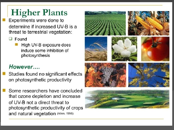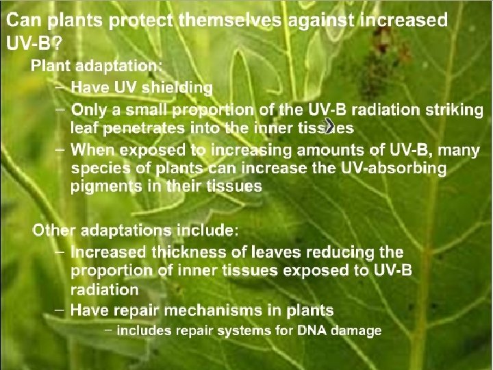Photosynthetically Active Radiation (PAR) � The photoreceptors in chlorophyll are most absorptive of violet-blue and orange -red light � Since chlorophyll cannot absorb green light very well, most of it is reflected back, making plants appear green