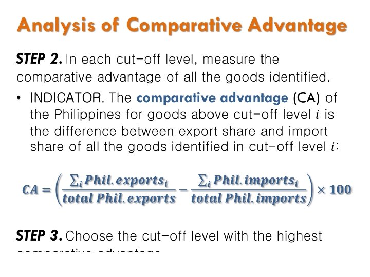 Comparative advantage of the Philippines in 54 APEC EGs APEC trade shares (%) in 2013, by cut-off level 16 APEC EGs: 2. 32% CA (3. 61% of exports and 1. 29 % of