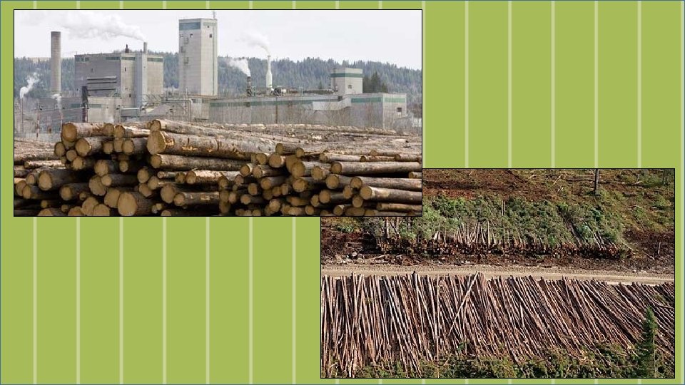 Timber Industry • Citizens are concerned that logging is destroying the forests. • Most timber companies cut all the trees in a given area, leaving large treeless gaps in the forest (called “clear-cutting”). • This reduces water quality, causes erosion, & kills animals’ habitats. • Heavy machinery leaves the forest floor compacted and makes it hard for new growth to start. • • Cutting trees down quicker than they can be re-grown is called “deforestation”. Trees are a limited resource. • If they continue to be overused, they will not be renewed.
