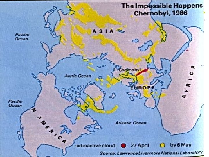 Effects of the Chernobyl Explosion: l l l The explosion caused radioactive material to be released into the air, poisoning the land. Cancer cases increased. (Over 1 million people were exposed to unsafe levels of radiation in Northern Europe. ) 28 emergency workers died. Nearby pine forests turned brown and died. Many animals died or suffered thyroid damage.
