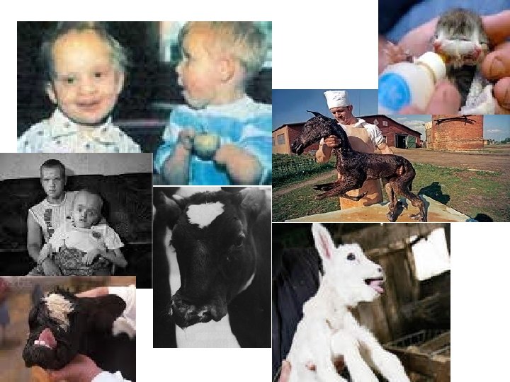 A researcher reports on the animals: l A major effect on the livestock was mutation. Below is an excerpt of a correspondent for Moscow News: " At the animal farm of the Petrovsky collective farm, I was shown a suckling pig whose head looked like that of a frog: instead of eyes there were large tissue outgrowths with no cornea or pupil. 'They usually die soon after birth but this one has survived. ’”