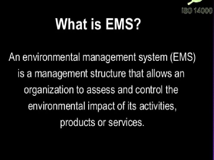 Significance of EMS ISO 14000 ØISO 14000’ is a global term for a set of standards that have been written in response to this need for environmental protection systems, in the same way that ISO 9000 standards were written to satisfy the need for quality assurance systems to control the goods produced and services supplied by companies. ØAre you trying to improve your environmental performance (e. g. , compliance with regulations or prevent pollution)