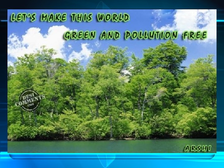 Control of Air Pollution • Setting of industries after proper environmental impact assessment studies • Modification of process and/or equipments • Use of appropriate materials • Use of low sulphur coal in industries or removing sulphur from coal • Removing NOx during combustion and controlling flow of air and fuel in industrial boilers • Vehicular pollution checking – catalytic converters – reducing carbon monoxide and hydrocarbon emission • Slow and cooler fuel burning – reduces NOx emission • Use of mass transport system, bicycles etc • Use of clean fuels (hydrogen gas) • Use of non-conventional sources of energy • Planting more trees • Reducing pollution at its source