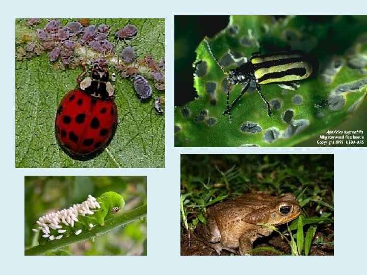 J. Biological Pest Control • Biological pest control is the use of living organisms to control pests. • Every pest has natural enemies and these enemies can be used for pest control • Example: using the American beetle to control cactus growth in India