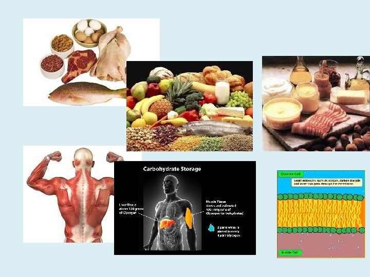 A. Humans and Nutrition • Humans use food as a source of energy and as source of materials for building and maintaining body tissues. • Energy in food is expressed in Calories (Cal) • Major nutrients we get from food are carbohydrates, proteins, and lipids • Malnutrition is a condition that occurs when people do not consume enough Calories or don’t eat a sufficient variety of foods. • Example: protein-energy malnutrition is when humans don’t consume enough essential amino acids, vitamins, and minerals.