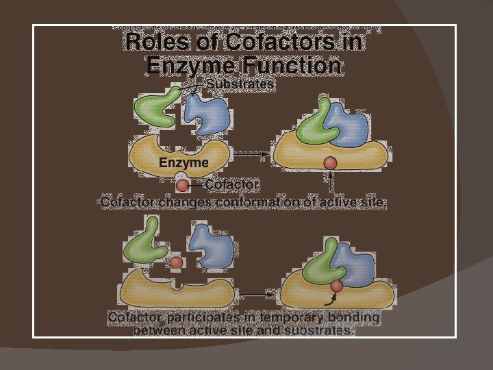 q q APOENZIM : PROTEIN NON AKTIF HOLOENZIM : APOENZIN + KOFAKTOR : ZAT NON PROTEIN (Ion metal; Fe, Mn, Zn dll) KOENZIM : MOL. ORGANIK NON PROTEIN Ø ENZIM HANYA DAPAT BEKERJA BILA DLM BENTUK HOLOENZIM ADA 2 MACAM STRUKTUR ENZIM : ü 100 % PROTEIN mis. PEPSIN ü PROTEIN + KO FAKTOR
