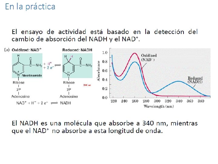 ¿Qué hacer en la práctica? 1. Cambiar el switch mental y enfocar los pensamientos en BIOQUÍMICA! 2. Realizar curvas temporales (determinar actividad por espectrofotometría) de todas las fracciones 3. ¡Mantener los tubos de extractos proteicos en hielo! 4. Determinar la actividad de la LDH mediante curvas temporales (¡¡¡¡registrar velocidades inicales!!!)