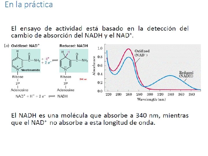 ¿Qué hacer en la práctica? 1. Cambiar el switch mental y enfocar los pensamientos en BIOQUÍMICA! 2. Realizar curvas temporales (determinar actividad por espectrofotometría) de todas las fracciones 3. ¡Mantener los tubos de extractos proteicos en hielo! Tomar alícuotas sin descongelar. 4. Determinar la actividad de la LDH mediante curvas temporales (registrar velocidades iniciales!!!)