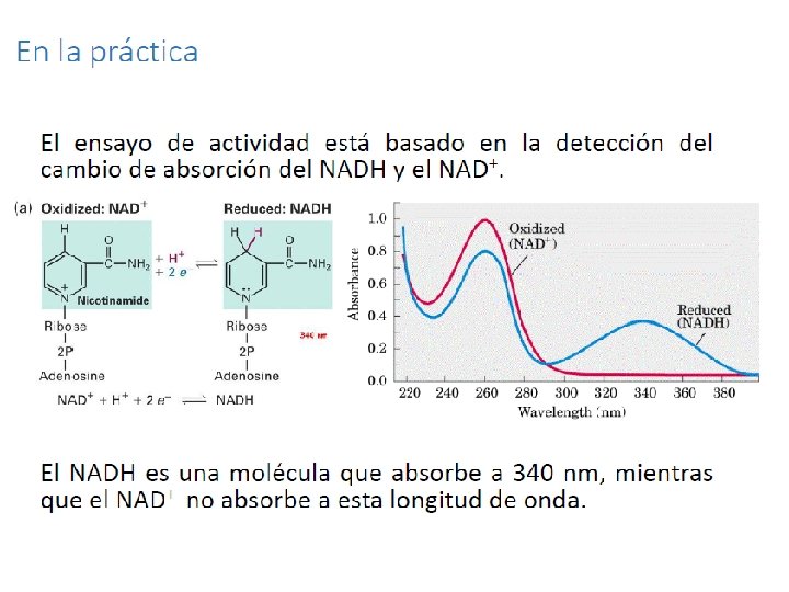 ¿Qué hacer en la práctica? 1. Cambiar el switch mental y enfocar los pensamientos en BIOQUÍMICA! 2. Recordar los pasos a seguir para realizar las curvas temporales (determinar actividad por espectrofotometría) 3. ¡Mantener los tubos en hielo! 4. Determinar la actividad de la LDH mediante curvas temporales
