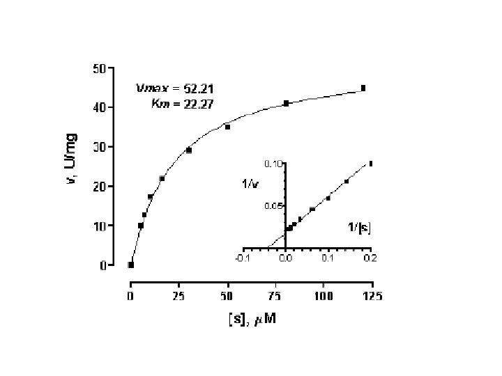 Constante de Michaelis-Menten (Km) La Km es la concentración de sustrato a la cual la velocidad es: Vmax/2 Es un parámetro de afinidad de la enzima por el sustrato Km ↑= baja unión al sustrato, baja afinidad por el sustrato Km ↓= alta unión al sustrato, alta afinidad por el sustrato