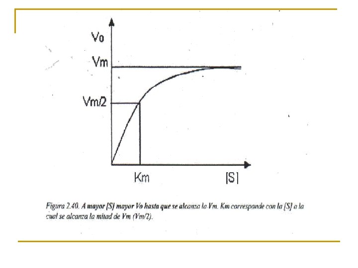 Así se obtiene la forma habitual de la ecuación de Michaellis y Menten: Vm (S) Vo= Km + (S) Donde: n Vo= Velocidad Inicial n Vm= Velocidad Máxima n (S)= Sustrato n Km= Constante de Michaellis, es un índice de la afinidad de la enzima por el sustrato, ( a mayor afinidad por el sustrato menor será el valor de Km ).